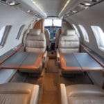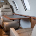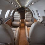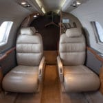The interior features cabin seating for 5 (five) with a mid-cabin four-place club, single co-pilot’s side facing seat, forward left-hand deluxe refreshment center, and belted aft potty seat. Flight crew seats recovered in 2019.