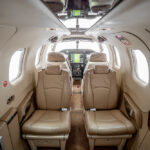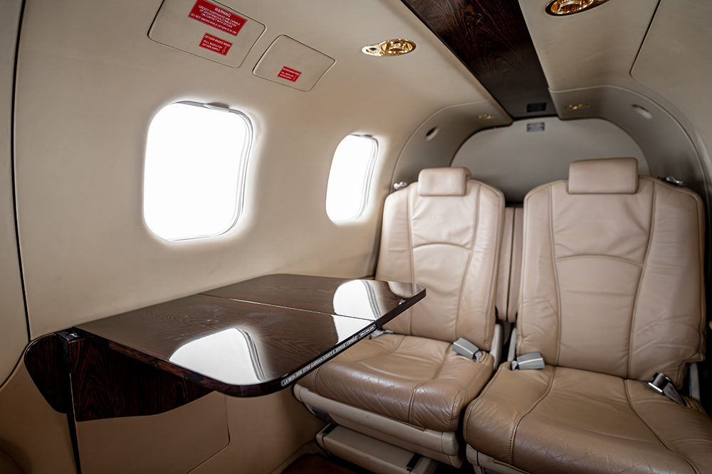 Executive Six Seat Interior, Tan Leather Seating w/Adjustable Backrests, Tan Upper and Lower Side Panels, Retractable Working Table.