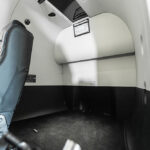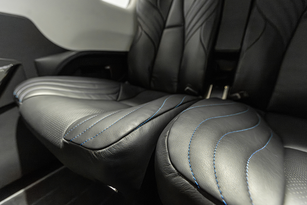Six genuine black leather heated seats with adjustable backrests, folding armrests and intermediate seats with forward or backward accommodation with multiple installation configuration. Black lower side panels and carpet,