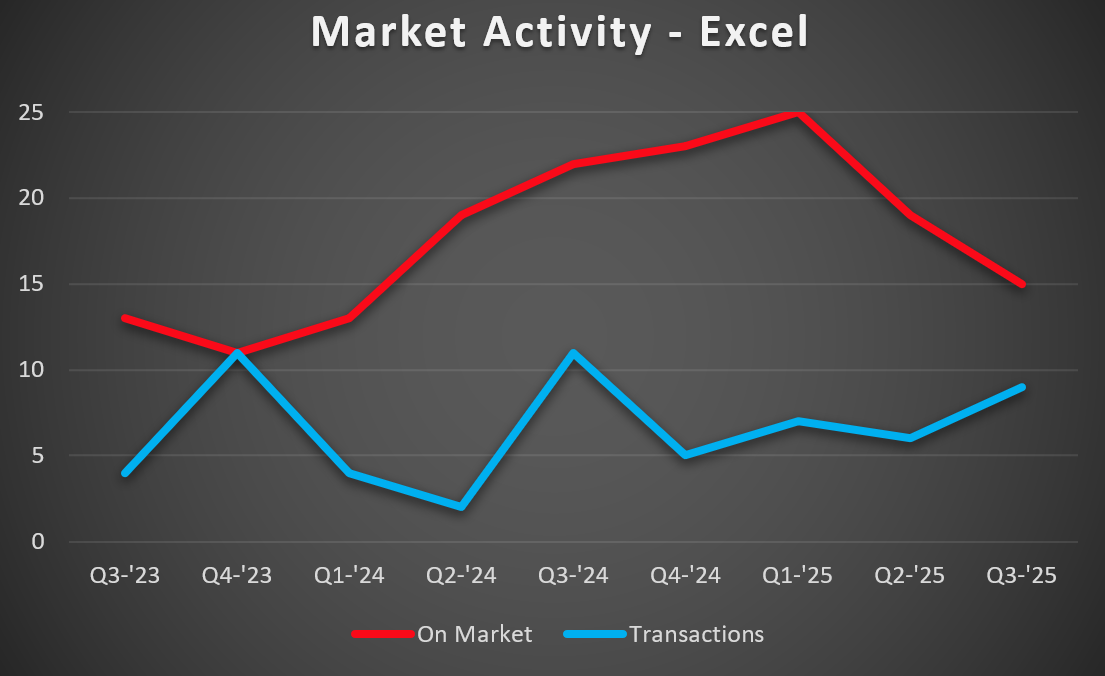 Citation Excel Inventory has declined for the 2nd consecutive quarter, and transactions have picked up. There are now just 15 Excels available, down from 19 in the prior quarter. This represents 4.3% of the active fleet, the lowest we’ve seen since the first quarter of 2024. Along with dwindling inventory, transactions have picked up with Q3 producing nine transactions, which is well above the six sales during Q2. Values have come up a little bit, as buyers are paying a premium for aircraft fully enrolled in an engine program. With few options to choose from and strong demand, this market is favorable for sellers.
