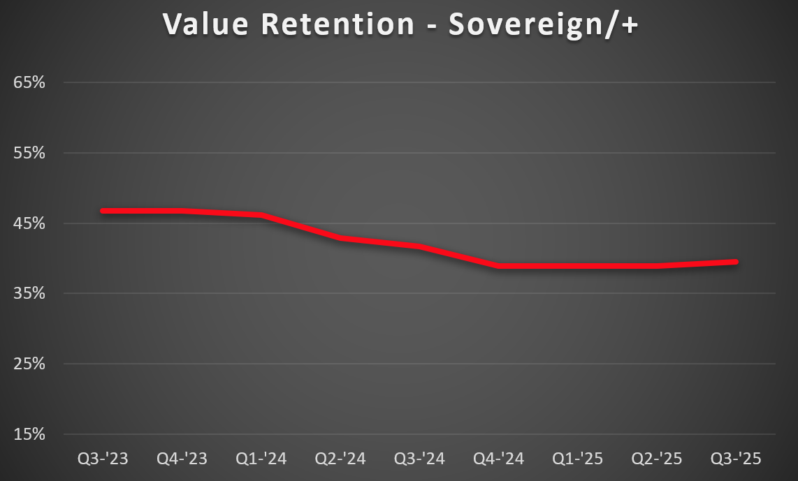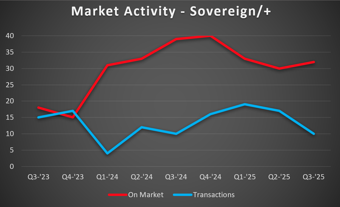 Transactions have cooled off a bit in these two markets, but quality airplanes are becoming hard to find. Even though there are 32 listings between the Sovereign and Sovereign+ market, buyers are struggling to find quality, fully programmed domestic airplanes to meet their needs. This has taken its toll on transactions, as just 10 sales took place in Q3, down from 17 during the quarter prior. Values are holding steady and have even increased slightly in some model years. With both stable demand and supply, this market is considered balanced for buyers and sellers.