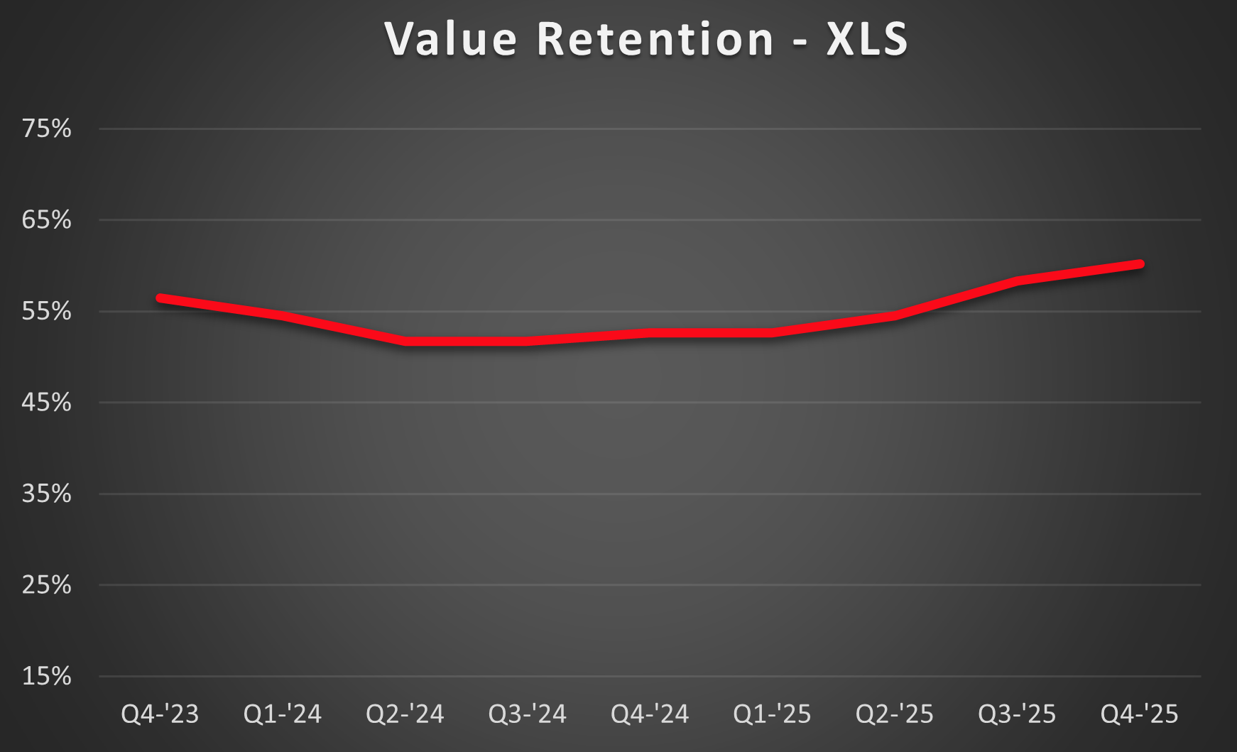 After increasing slightly in Q3, XLS+ inventory has dropped significantly due to an active yearend. There are now 14 listings available in this market, down from 21 the prior quarter. 4.5% of the active fleet is listed, the lowest level since the end of 2024. The decrease in inventory comes from a remarkably busy Q4, where 19 sales took place. This is the most activity we’ve seen in the XLS+ market in many years. Values aren’t increasing as much as in the XLS market, but prices are holding strong and are up slightly in most model year ranges. With a lack of options and strong demand, this market remains favorable for sellers.