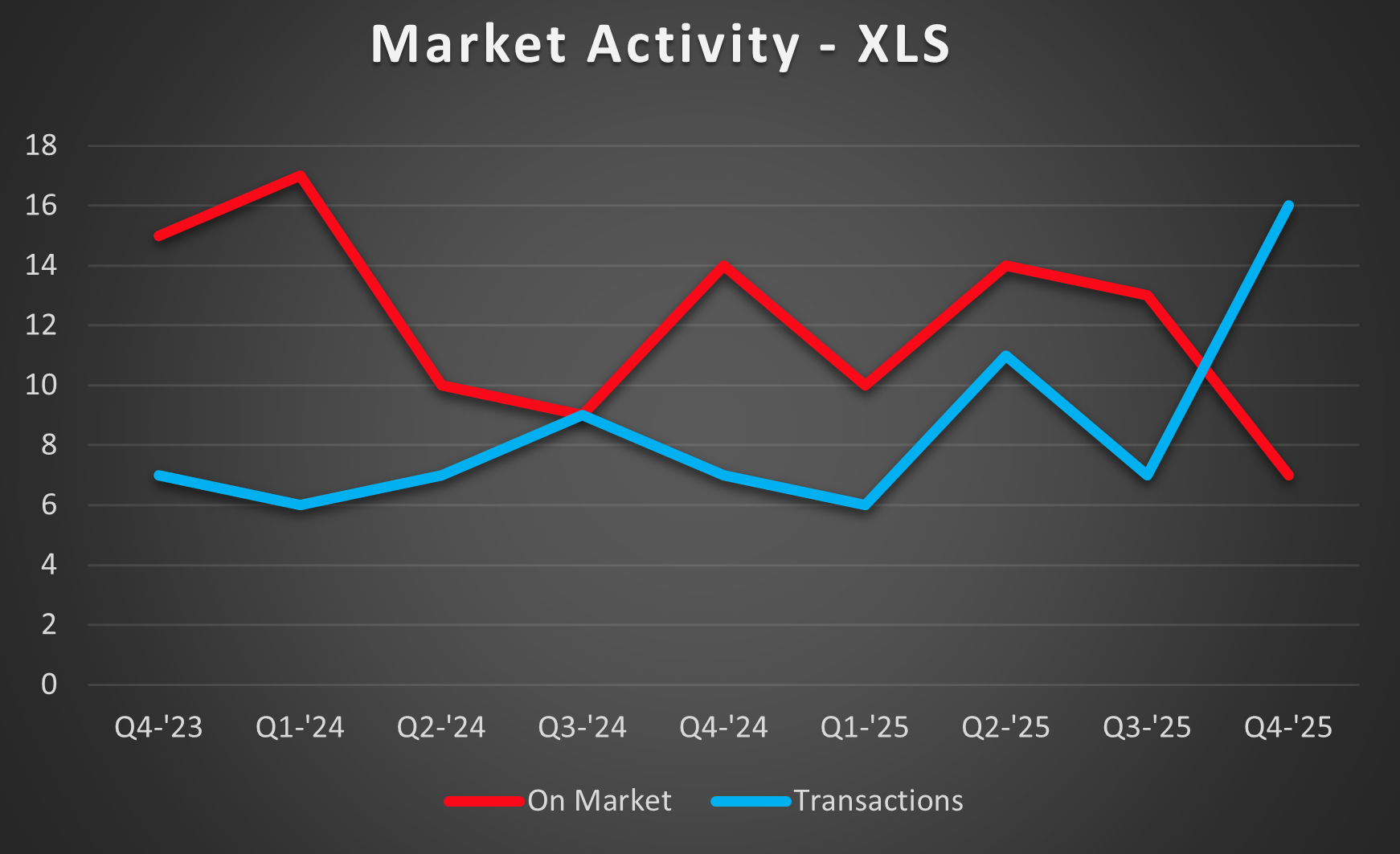 have been holding steady, with Q4 producing 12 sales, identical to a year ago. 2025 ended up with 51 transactions, which is well above the 37 that traded in 2023, but didn’t quite match last year’s activity level of 60 sales. Even with increased inventory, steady demand has kept pricing in check, with values holding steady for three quarters now. With elevated inventory, yet steady demand, this market remains balanced for buyers and sellers.