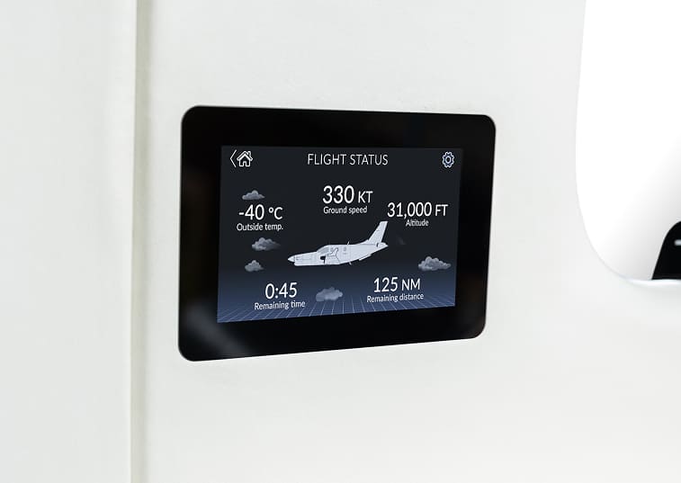 During the day, passengers control the cabin’s ambient light and window shading via the Passenger Comfort Display.